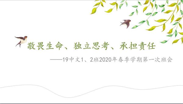 人文社会科学学院各专业班主任、辅导员通过精心录制视频等形式组织开展了以“敬畏生命、独立思考、承担责任”、“做一个阳光的人”等为主题的线上班会,为同学们讲述了疫情防控的基本知识,呼吁同学们理性应对此次疫情,鼓励同学们在灾疫面前应自觉担起社会责任,勇于担当,知行合一,积极传播正能量,为积极“抗疫”作出青年人应有的贡献。同时,了解同学们学习生活情况,对同学们进行学习引导和心理关怀,鼓励同学们在家勤勉学习,充分利用网课拓展自己。