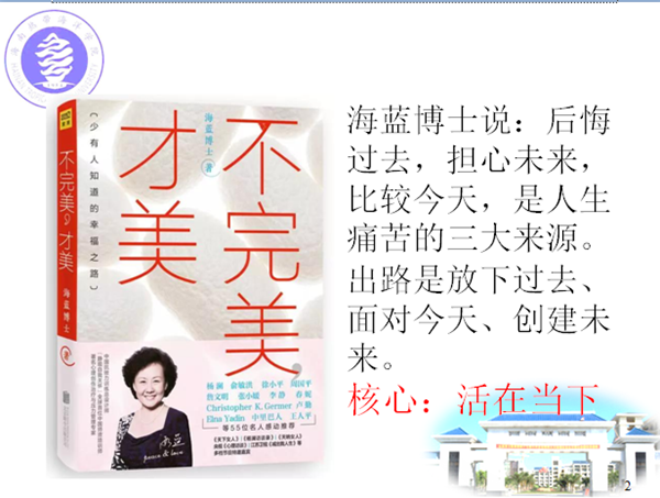 民族学院李佳莲同学深切体会到,自从上了“活在当下”线上心理课,明白了与其焦虑,不如重视当下,总想着未来,不如当下行动。做好当下事,未来自然可期。
