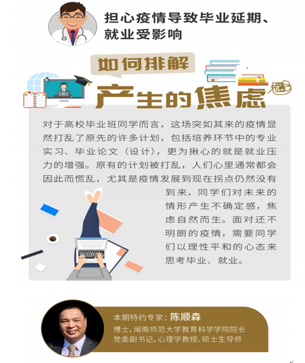 外国语学院通过疫情防控知识教育微课堂推送疫情期间心理防护知识,提升师生的疫情心理判断及防护能力,保证疫情期间的心理健康,通过心理健康教育微课堂和就业观念教育微课堂,推送《国务院联防联控机制举行鼓励企业吸纳高校毕业生、农民工就业相关政策发布会》《担心疫情导致毕业延期、就业受影响,应如何排解产生的焦虑呢?请听心理学专家是怎么和您说的》等信息,教育2020届毕业生面对并接纳现实,以理性平和的心态来思考非常时期的毕业、就业问题,转变就业观念,积极主动参与各类线上招聘活动、求职云课堂等,让同学们相信隔空也能找到一份满意的工作;推送《长时间居家和父母产生矛盾,应如何解决家庭关系紧张呢?请听心理学专家是怎么和您说的》,教育师生在这长时间居家如何处理好家庭成员之间的各种关系。