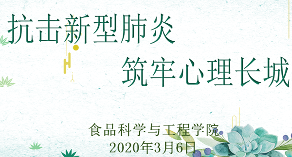 食品科学与工程学院将同济大学新型冠状病毒肺炎疫情防控指导组毕婉蓉主编的《新型冠状病毒肺炎防护手册》(高校版)在学院网站发布,组织开展“抗击新型肺炎,筑牢心理长城”主题网络心理防疫教育,引导同学们正确面对疫情,筑牢心理长城,打好心理防“疫”战。