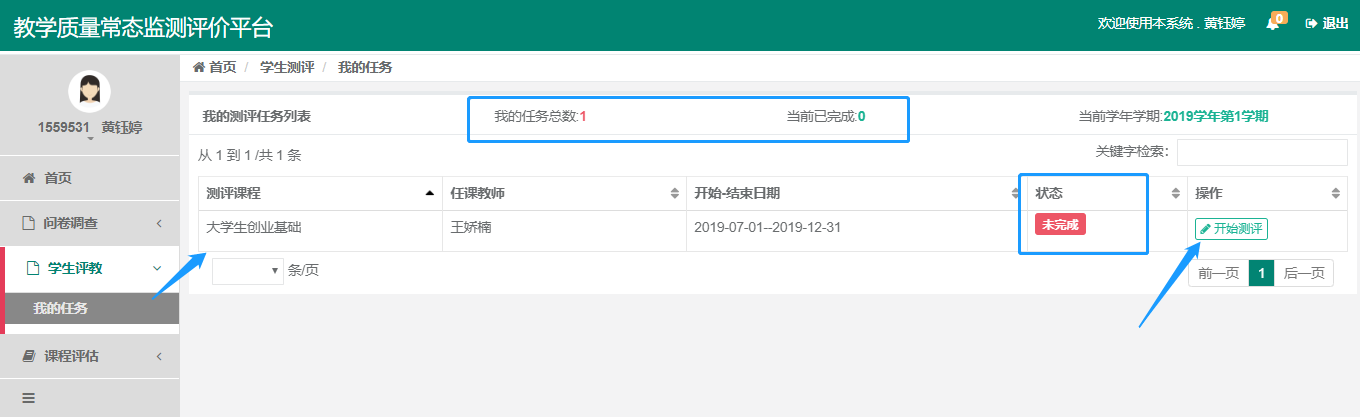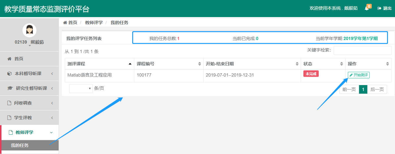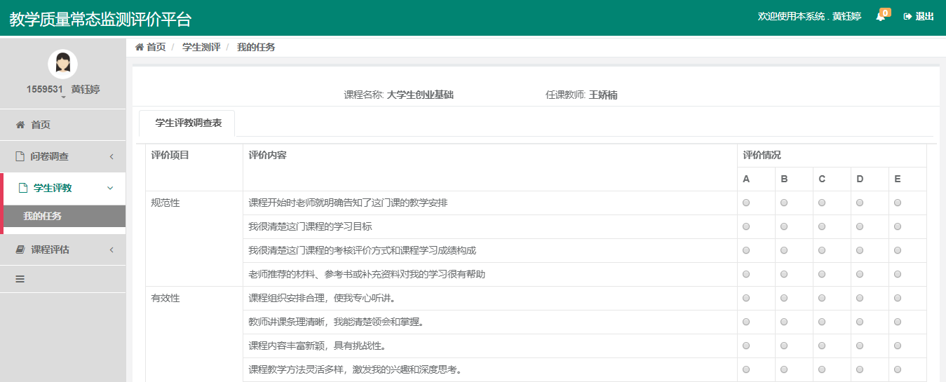 4. 评学对象:教师本学期所教授的教学班。