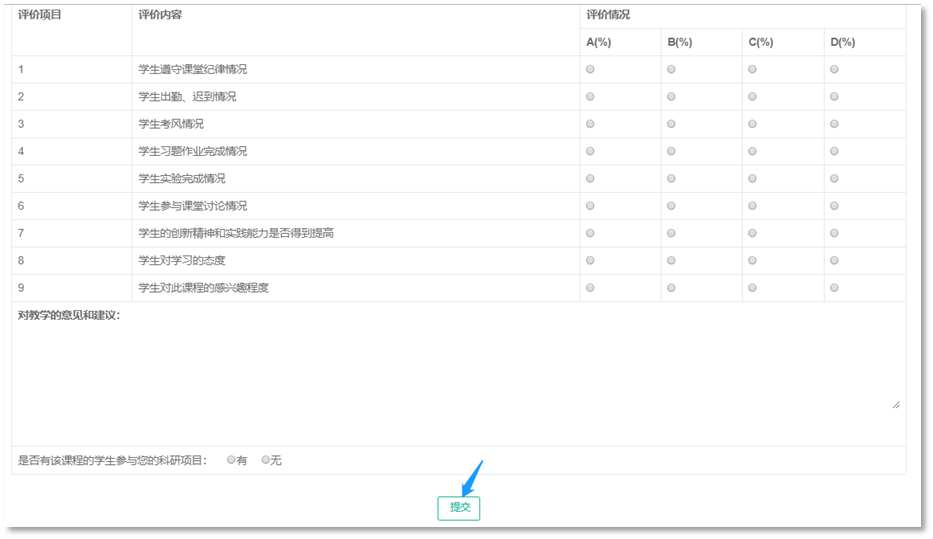 1.评教主体:所有全日制在校生。